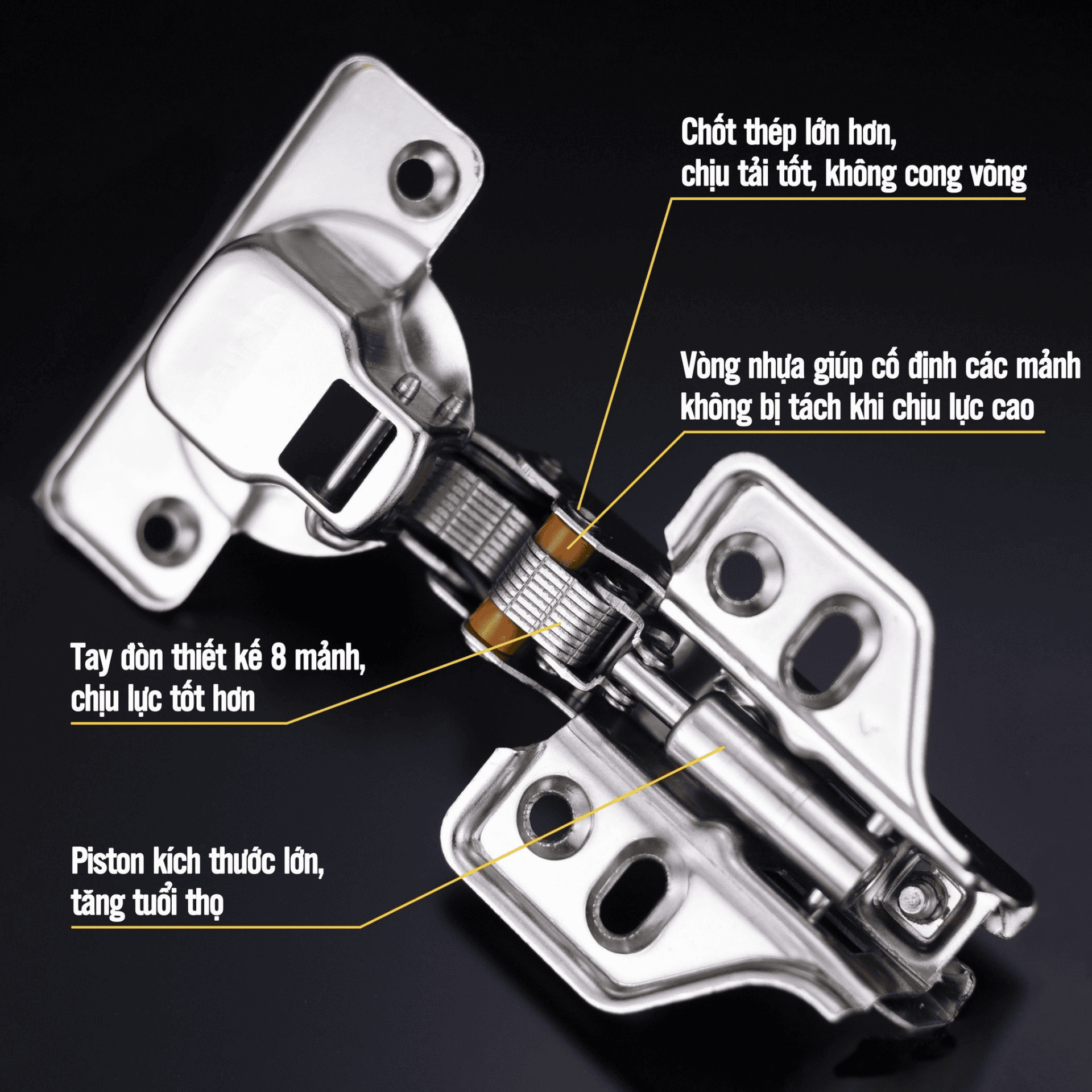 - Bản lề hơi hay còn gọi với những cái tên khác như bản lề giảm chấn, bản lề thủy lực
