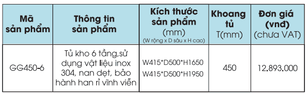 Kệ tủ đồ khô 6 tầng inox SUS304