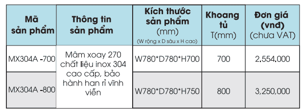 Chất liệu inox 304 cao cấp, bảo hành han rỉ vĩnh viễn